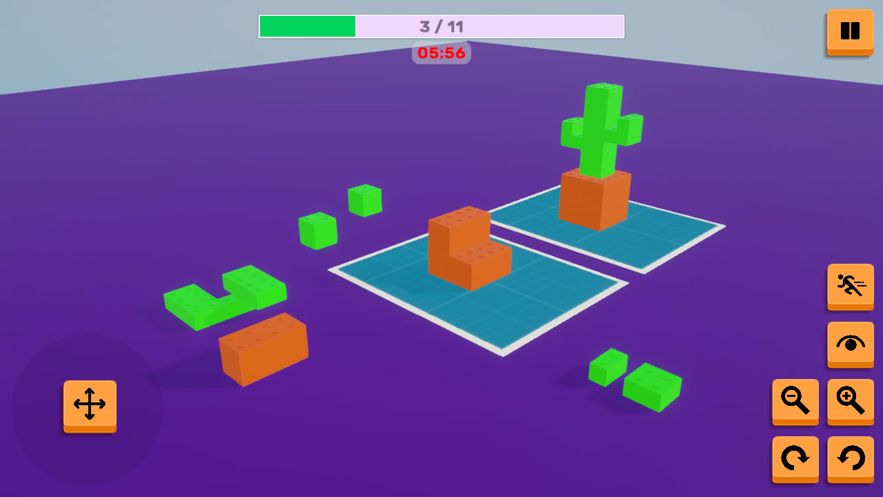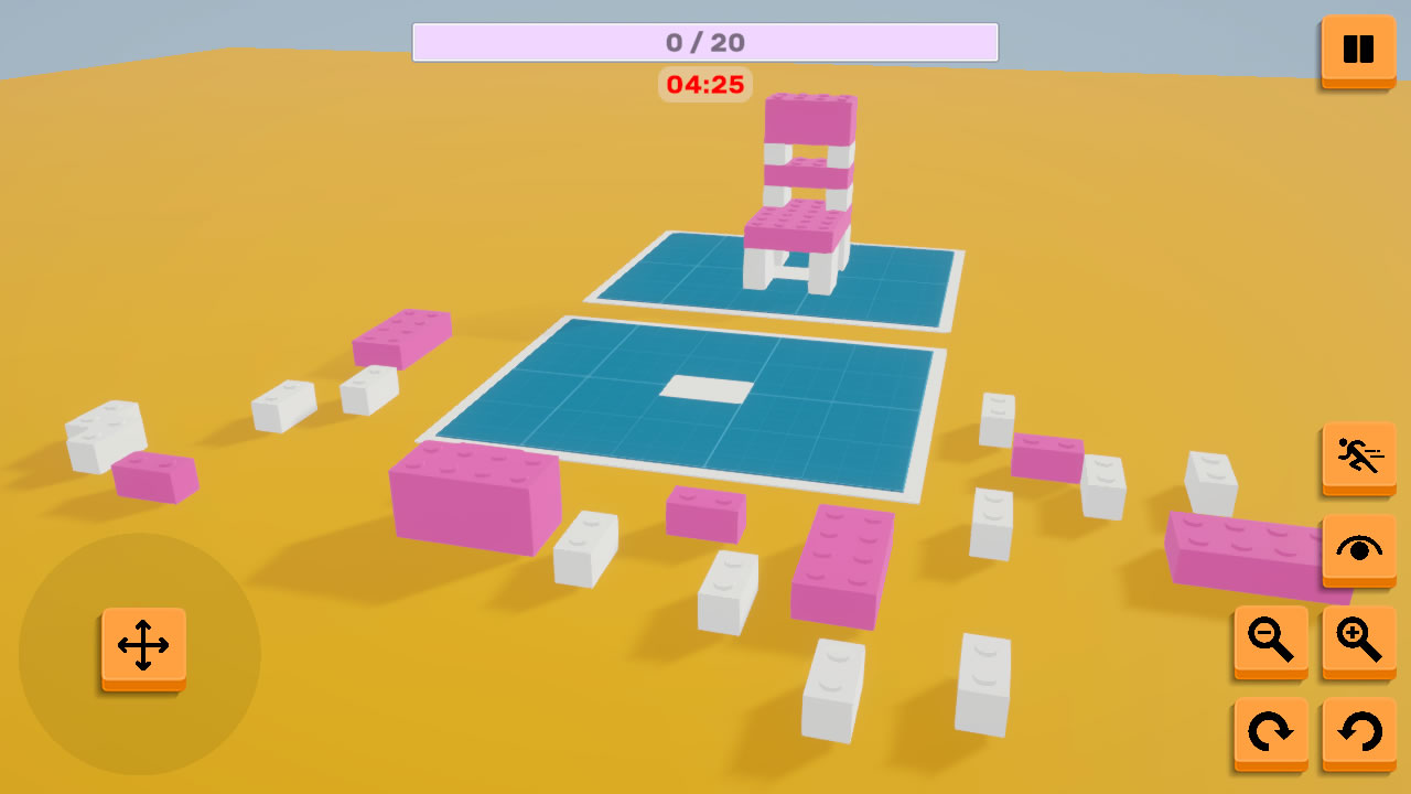 Blocky Set is a 3D emulator of real-life brick building games, where you are presented with a complete model and must reproduce it by placing the pieces in the correct location.